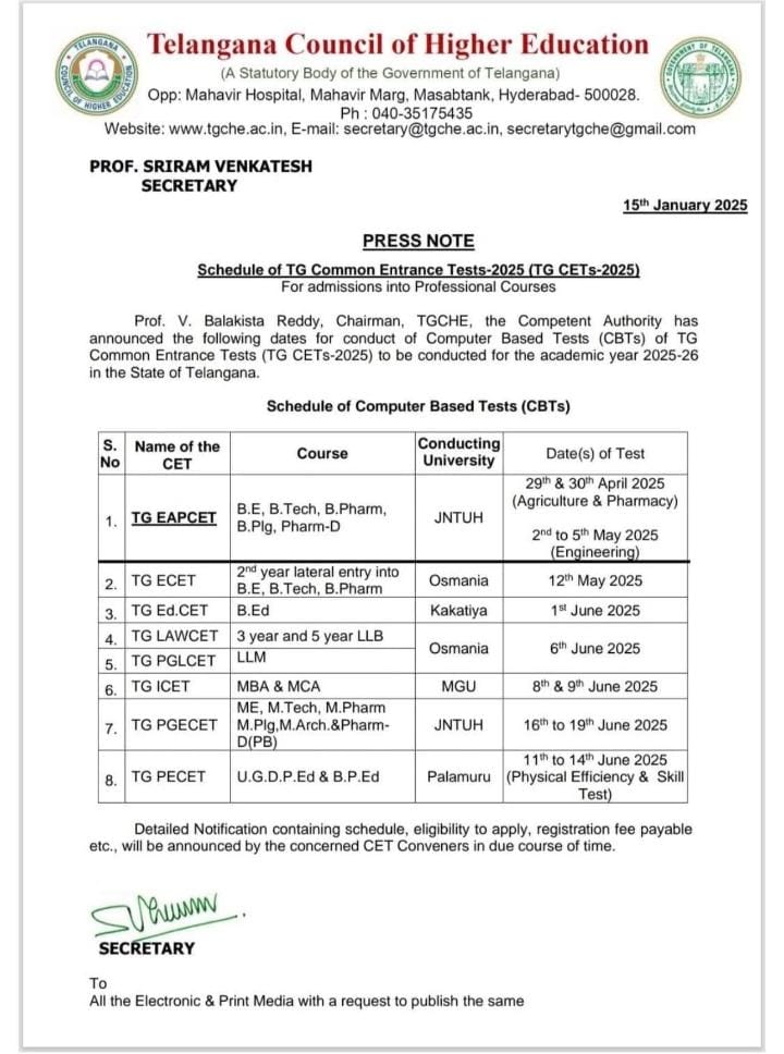 తెలంగాణ ప్రవేశ పరీక్షల తేదీలు-2025 Read More